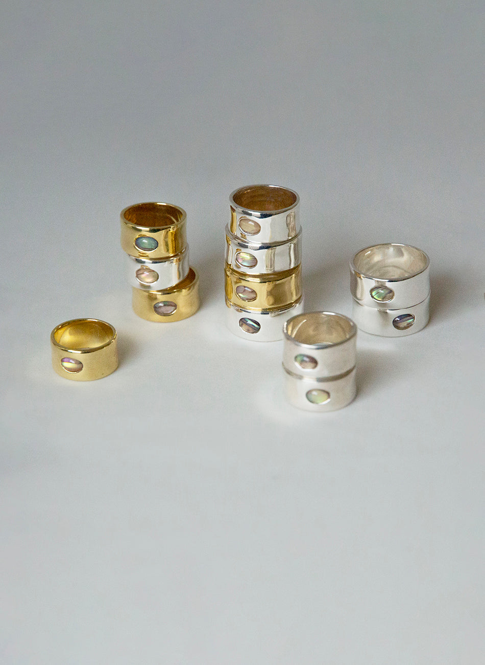 鮑魚的耳形貝殼以其獨特而生動的虹彩光澤揚名,虹彩色現象也被稱為”珍珠光澤(orient)”,它是由多層的方解石薄片微結構和有機成分中,由光線造成的干涉和繞射所產生,簡言之隨著貝殼的生長而增加厚度,也因此豐富累積「虹彩」不管什麼色澤的鮑魚貝殼,反光顏色總是一道黃綠色輝光,猶如極光綠。