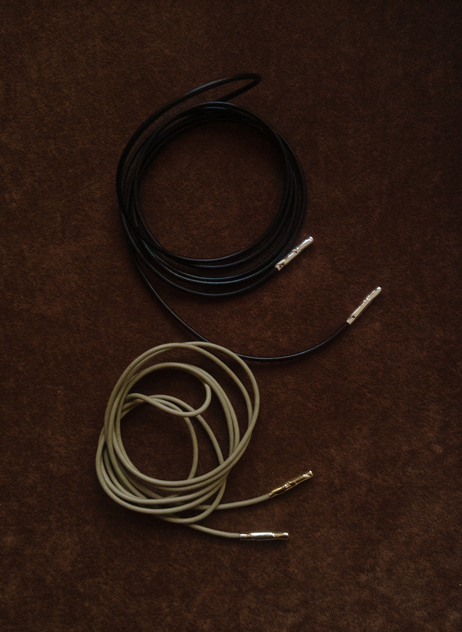 皮質繩金屬波洛項鍊,提供四種皮繩色選擇,全長120cm。