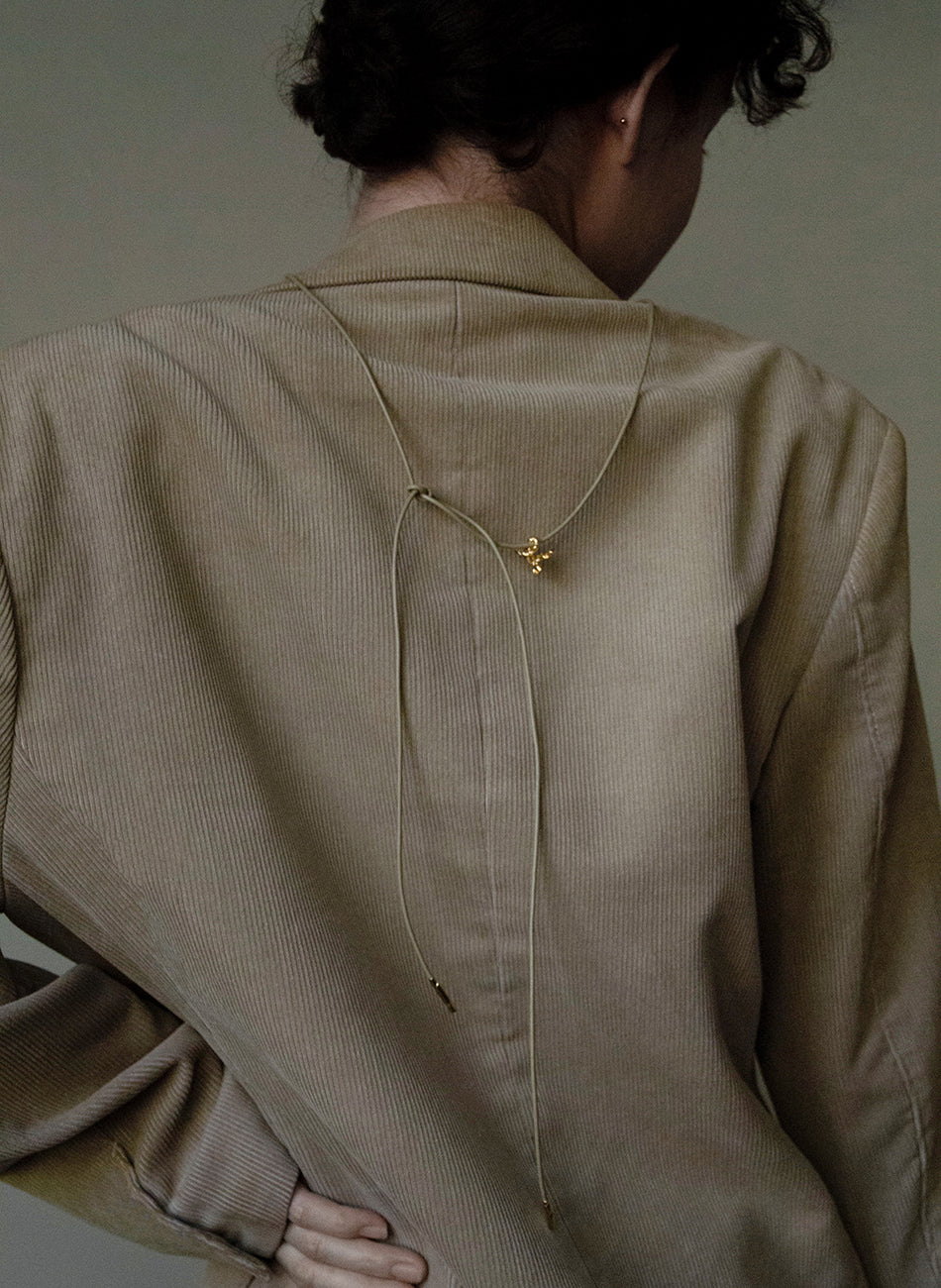 項鍊:皮質繩金屬波洛項鍊,提供四種皮繩色選擇,全長120cm。